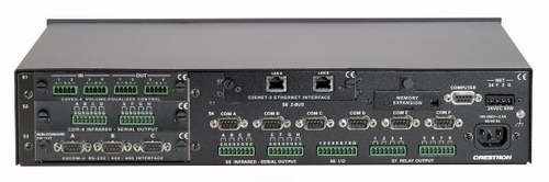 快思聰2-系列旗艦產品PRO2用于滿足大中規(guī)模商業(yè)和家居控制應用的需要。6個內置的COM端口、8個紅外/串行端口、8個I/O多用端口以及8個絕緣繼電器為控制多種設備提供了基本的接口,這些設備包括視頻投影儀、等離子顯示器、轉換器、VCR、DVD播放器、屏幕、電梯等等。還可以在PRO2的內置Y總線擴展插槽中安裝至多3個Y總線控制卡,從而添加額外的控制端口和其它接口,例如MIDI、DTMF和數字音頻處理。