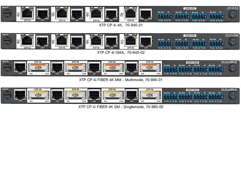 XTP CP Fiber 4K 輸入/輸出矩陣板提供行業(yè)標(biāo)準(zhǔn) LC 型連接,并提供兩種格式:多模和單模。MM 型號(hào)支持 OM4 多模光纖,一般用在中等距離傳輸?shù)慕ㄖ蛟O(shè)施內(nèi)。SM 型號(hào)支持單模光纖,具有極長距離的傳輸能力。