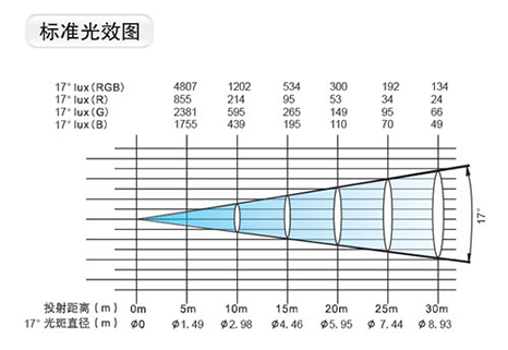 輸入電壓90V~264VAC,50 60Hz額定功率140W@220VLED光源功率3W數(shù)量36顆(12R+12G+12B)額定壽命50000小時(shí)顏色RGB線性混色色溫色溫校正10000K-