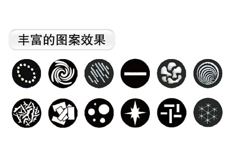 1個(gè)旋轉(zhuǎn)圖案盤(pán):12個(gè)自轉(zhuǎn)圖案+白光