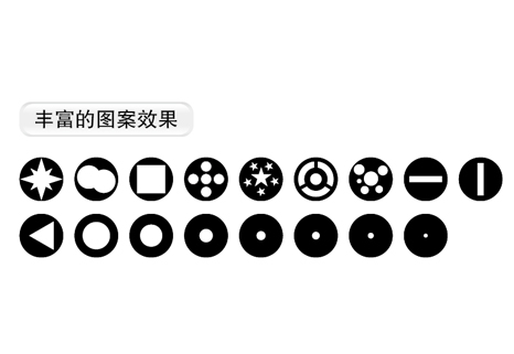 1個固定圖案盤,17個可更換圖案片(可選配),具有變速抖動效果、雙向變速流動效果