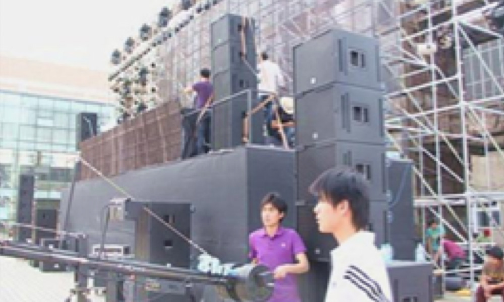 本系統(tǒng)采用美國Ev和德國Dynacord眼鏡蛇系列陣列音箱系統(tǒng)組成多組擴(kuò)聲陣列、還有舞臺 燈光系統(tǒng)及舞臺LED背景屏幕等。