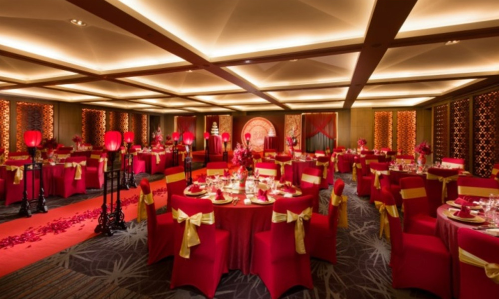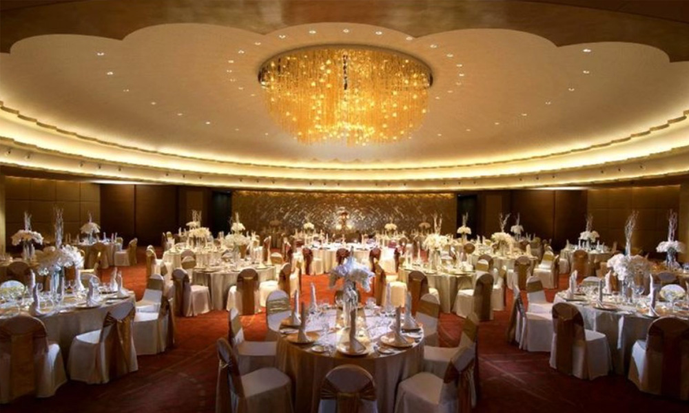 1、宴會多功能大廳,主要滿足婚慶招待、報告型會 議、新聞發(fā)布、教學(xué)培訓(xùn)等活動,宴會廳可以靈活 拆分或整體使用,整個系統(tǒng)采用智能集中控制。
