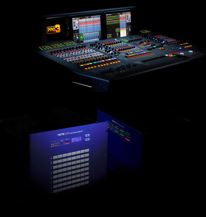 配備多達6個的數字效果器機架;29個100mm MIDAS PRO電動推子;2個15寸強光型高亮液晶顯示屏