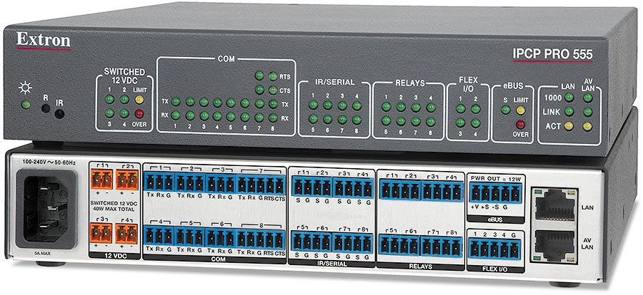 | Control options | GlobalViewer?, Extron Control for iPad and Web, TouchLink? Pro touchpanels, or eBUS? button panels |