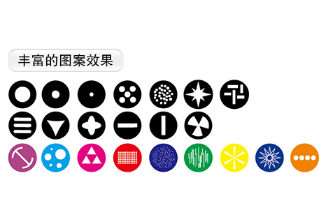 1個旋轉(zhuǎn)圖案盤:9個自轉(zhuǎn)圖案+白光,具有變速抖動效果、雙向變速流動效果,自轉(zhuǎn)圖案片可換。圖案片外形直徑Ф15.9mm,圖案有效直徑Ф13mm