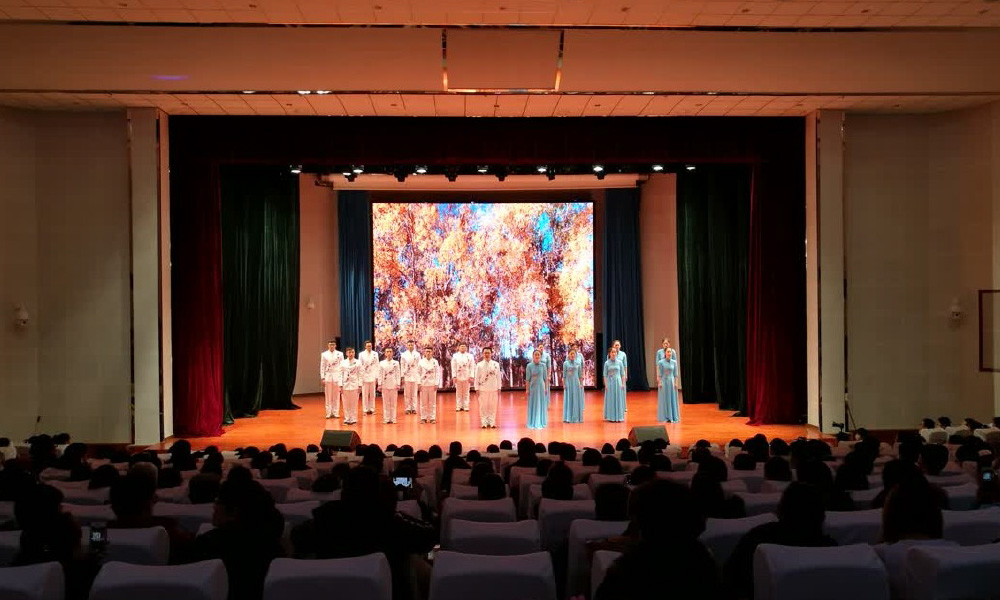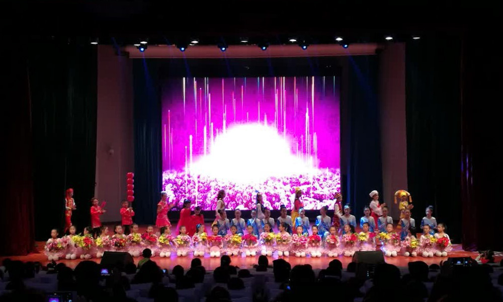 2、舞臺燈光系統(tǒng):舞臺表演的舞美燈具采用LED染 色燈,電腦圖案搖頭燈、電腦光束燈、煙霧機(jī)配合 完成文藝表演的燈光效果。為了滿足開會,配置采 用三基色燈具保證色溫和顯色性, 3、LED大屏采用P4的高清全彩屏