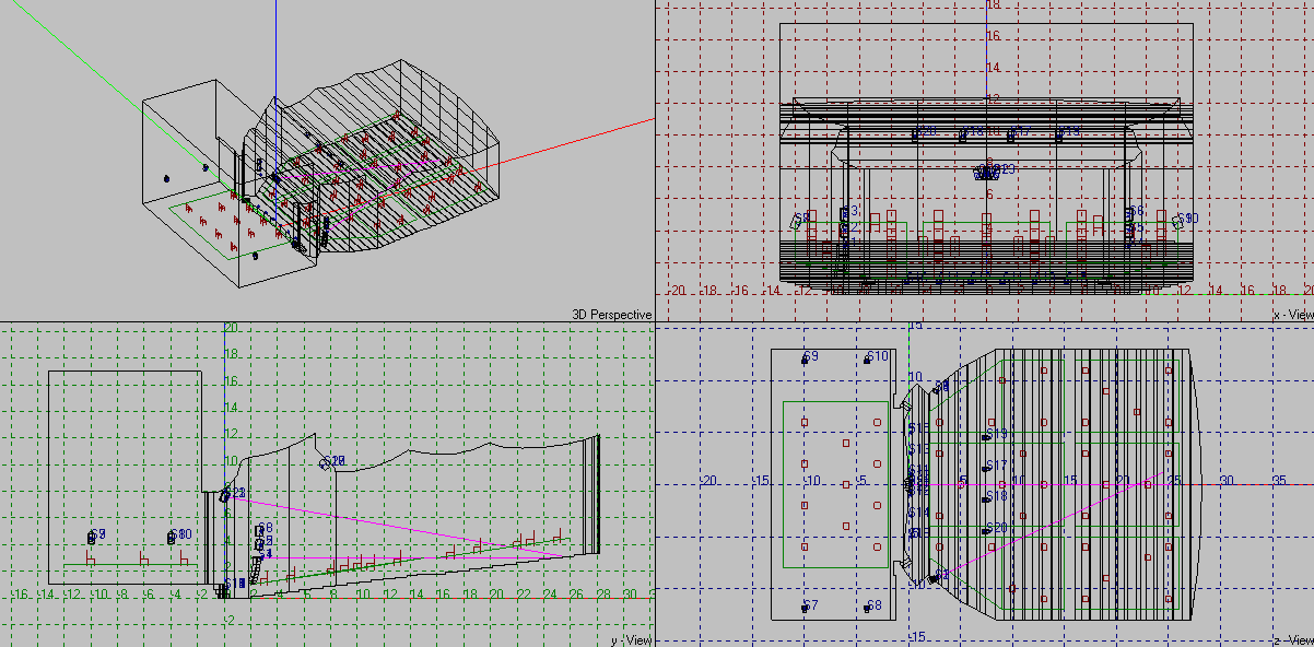 擴聲聲場設(shè)計決定了觀眾、表演藝術(shù)(演員)和技術(shù)人員(調(diào)音師)通過音箱所能接收到的信息可以達到什么程度,是聽感形成的關(guān)鍵。其中包括建聲環(huán)境、擴聲形式的選擇、音箱系統(tǒng)的選型以及相關(guān)的設(shè)計分析與計算工作。